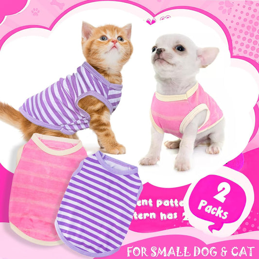 Kallfir's cutie 2 Pieces Chihuahua Clothes Summer Dog Clothes for Small Dogs Girl Spring Stripe Dog Shirts Cute Soft Pet Puppy Cat Clothes