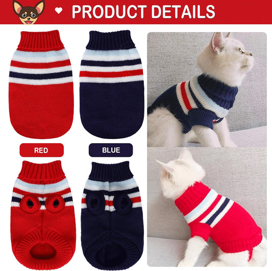 Kallfir's cutie 2 Pieces Christmas Dog Sweater Xxs Dog Sweater Striped Knitted Turtleneck Winter Dog Clothes for Small Dogs Chihuahua Sweater Christmas Dog Outfit
