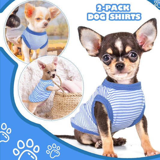 Kallfir's cutie XXS Dog Clothes , 2 Pieces Chihuahua Clothes Striped Dog T-Shirt Yorkie Teacup Dog Clothes for Small Dogs Girl Puppy Clothes